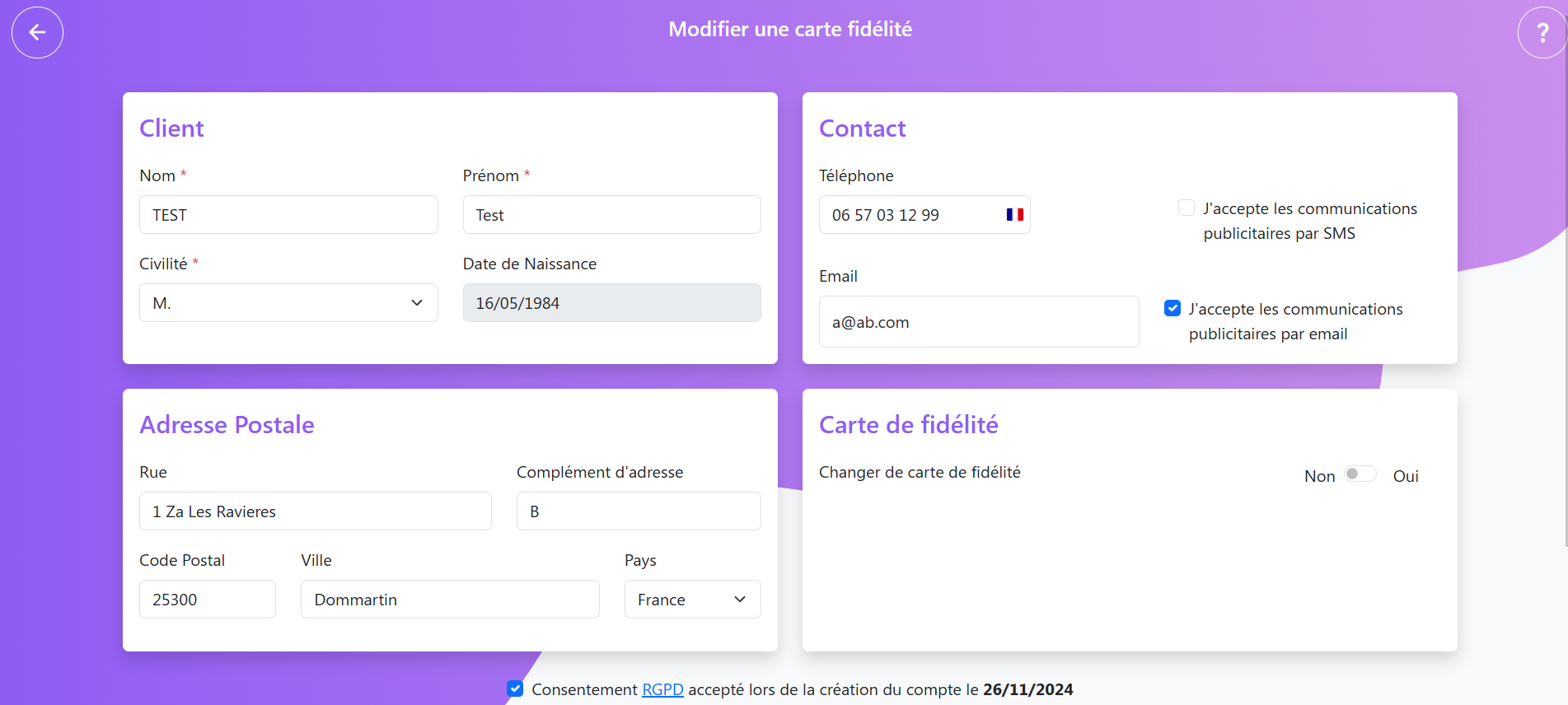 Elle permet de suivre sa fidélité et de dématérialiser la carte sur le téléphone. Le client peut ainsi :